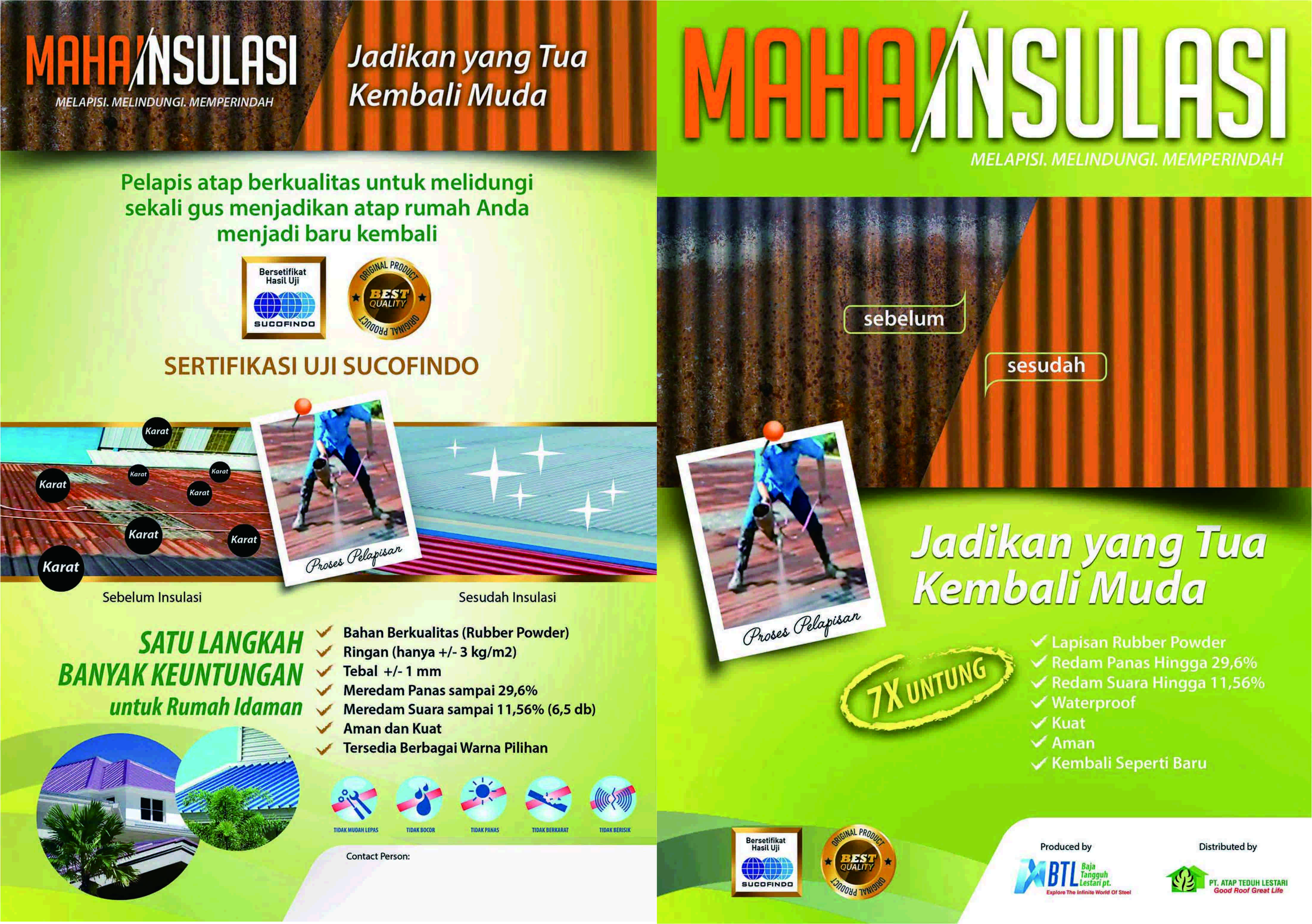 Pelapis Atap Metal yang berfungsi untuk Meredam Panas Matahari dan Suara Hujan. Bisa juga untuk melapisi Atap Metal yang sudah berkarat agar terlihat Baru dan lebih muda kembali. Bisa digunakan disemua Atap Metal. Ada beberapa Variasi warna yang sangat indah. Banyak sekali keuntungan yang bisa didapat dari MAHA INSULASI.